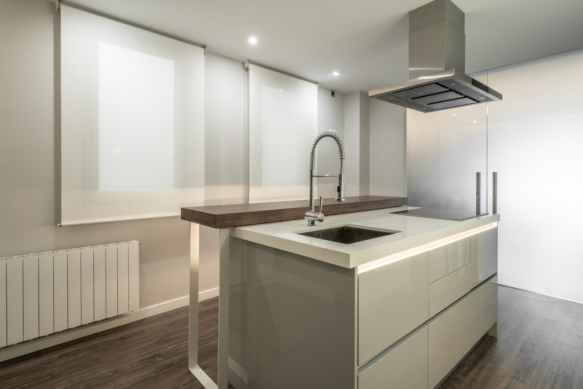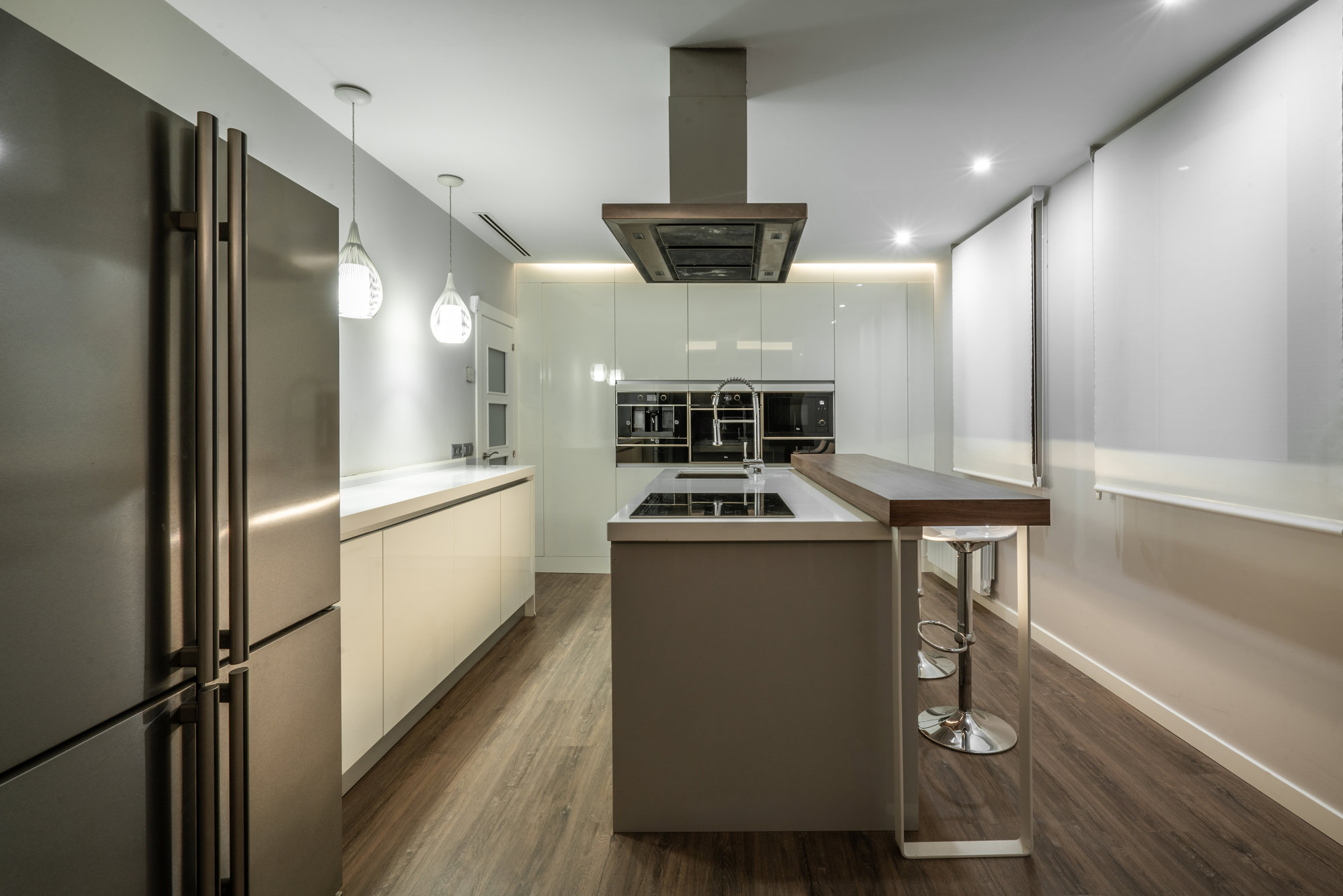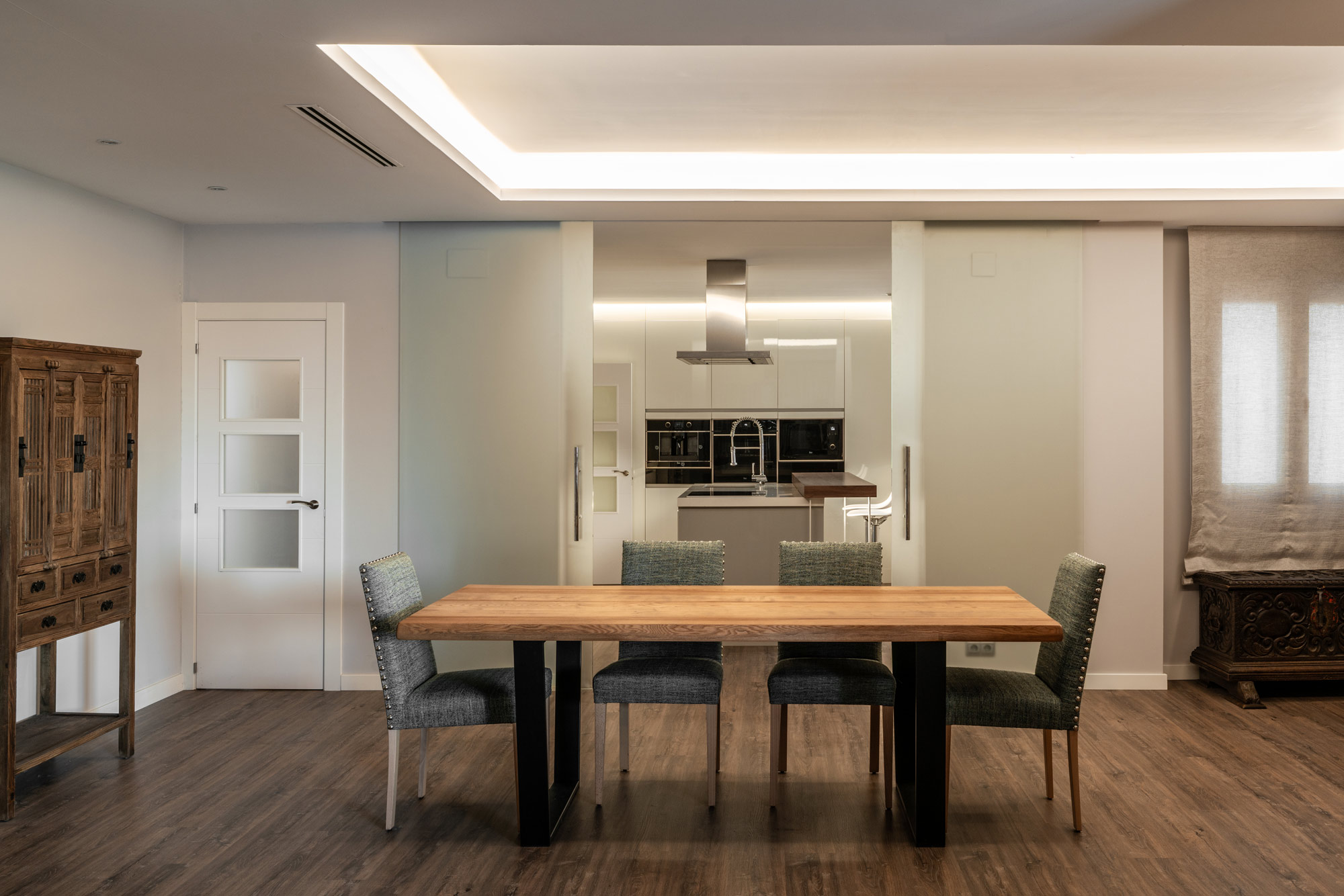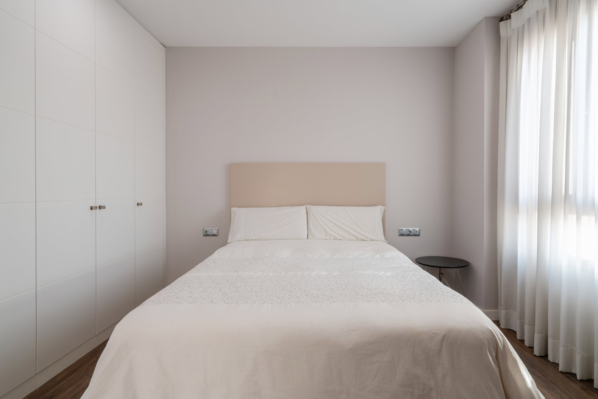 Reforma integral de una amplia vivienda en el centro de Valencia, junto a la Plaza de Toros. Se rediseñó completamente el espacio, creando una distribución moderna con cinco habitaciones dobles, tres de ellas en suite, todas con armarios empotrados y grandes ventanales. La cocina office, equipada con electrodomésticos de calidad, se integra con el salón-comedor en un espacio diáfano y acogedor. Los baños combinan estilo y funcionalidad, mientras que los acabados claros y ventanales amplios maximizan la luz natural y el confort.